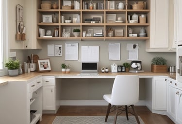 Creation of a central system for your home. We'll design a command center tailored to your space. Including a weekly planning zone, paper and schoolwork systems, calendar and routine tracking.