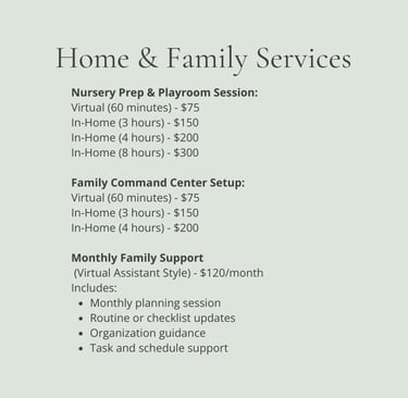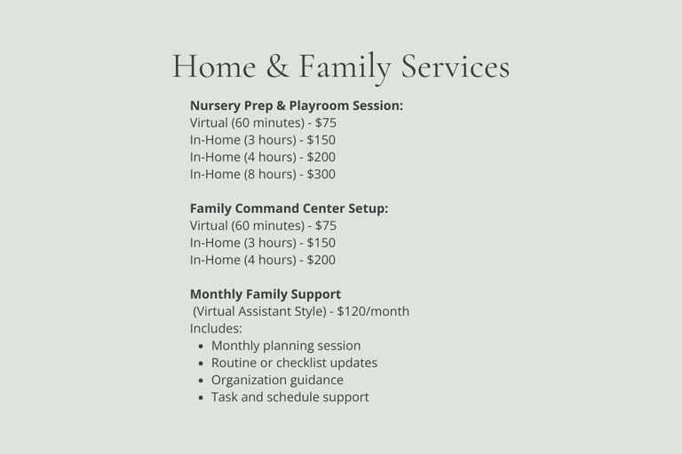 LifeKit Home & Family is designed for busy households who want less chaos and more calm. Whether you're prepping for a new baby, managing toy clutter, or trying to create better daily routines, these services help you build practical systems that actually work in real life.